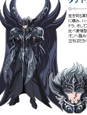 掌管死亡的神,与睡神休普诺斯是双胞胎兄弟。眼睛和头发的颜色为黑色,额头有实心的五角星。(圣斗士星矢SS空心为五角星,与修普诺斯一致。但唯一不同是头发、瞳孔颜色均为银色)在冥王神话LC中他不是真身而是人间体,虽是人间体但也能用一颗棋子轻松挡住黄金圣斗士马尼戈特的全力一击,还同时将拥有雅典娜护符的教皇赛奇与巨蟹座的马尼戈特两位顶尖的圣域战士逼入绝境,但同时自己也因为轻敌而被二人合力封印。