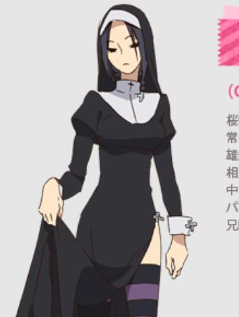 雄飞之妹,樱新町的土地神。穿着修女装及系绑了十字架的辫子,双刀流,武器为两把武士刀。非常喜欢熊的布娃娃,因为有时会介入妖怪猎人与町内的战争而常被雄飞说教。