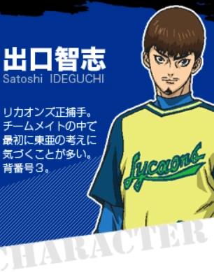 除儿岛弘道外,最早发现渡久地投球的才能的人。由于需要多次练习如何接住渡久地那没有任何暗号就发出的投球,慢慢成为渡久地其中一位核心伙伴,经常与渡久地及儿岛商议比赛策略。
