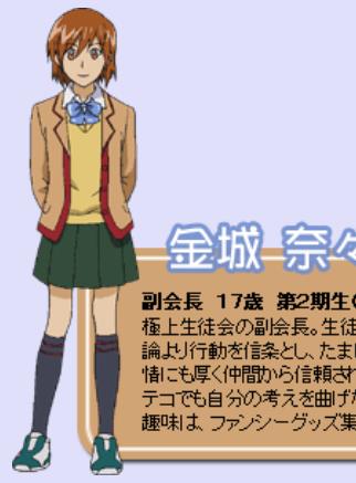 金城奈奈穗 人物简介:金城奈奈穗是《极上生徒会》里的人物角色,下面一起看看金城奈奈穗的性格、外貌特征、能力技能、人际关系、以及个人故事背景吧,如果你喜欢这个角色,记得点赞支持。