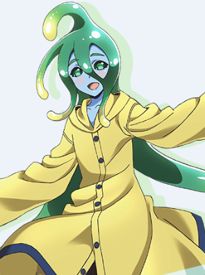 少女形状的史莱姆,平常以蓝色冻状物的型态行动,变成人型姿态的时候,头顶类似头发的部分及双眼为绿色,其余部分为半透明的蓝色,身高、体重、体型、三围会随水分多寡来变化。
