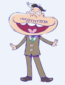 两眼下垂、嘴巴特别宽大的男性。