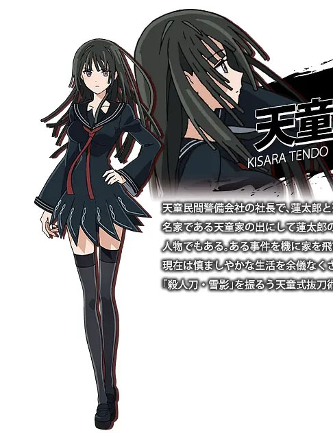 患有糖尿病,多年前父母在她面前被原肠动物吞噬后使病情恶化,现在肾脏几乎没有作用,须定期到医院洗肾。认为父母的死与天童家有关,为了复仇而疯狂磨练剑术,已达到“天童式拔刀术”的免许皆传,但因肾脏问题而不能长时间战斗,无法在前线活跃而待在办公室中。