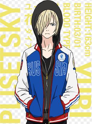 原本看不起为失败哭哭啼啼的勇利,挑衅了他一番,其实很关注他的才能。喜欢以“猪”、“猪排盖饭”蔑称他。过去曾让尚未发育完全的身体做剧烈的四周跳跃而被雅科夫责骂,但维克托则抱持欣赏的态度,于是尤里与他约定优胜后让他为自己编曲目。然而维克托完全忘记此事,令他愤而随行到日本。