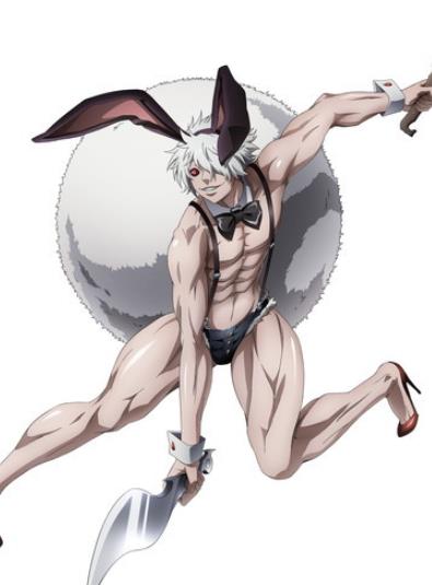 不只本名连一切情报都未知的神秘人物,红眼,头戴兔耳,上半身赤裸,下半身身着附带巨大兔尾巴的吊带短裤,脚下穿高跟鞋,相当沉默寡言。