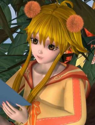 长相:长得十分萌又漂亮,超级可爱的LOLI脸,性格和装扮有些‘假小子’,清纯可爱的笑容就难掩少女温柔可爱的性格,头上的毛球装饰也显示了她的少女本性。