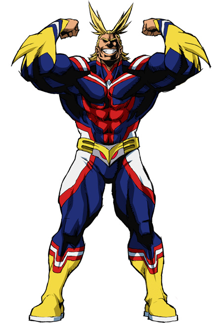 在故事开始的5年前的战斗中受了重伤,无法长时间维持超级英雄的形象,所以尝试在工作中寻找“个性”的接班人,因此遇到了主人公绿谷出久。在培养绿谷出久的同时,也遇到了平生最强的敌人。