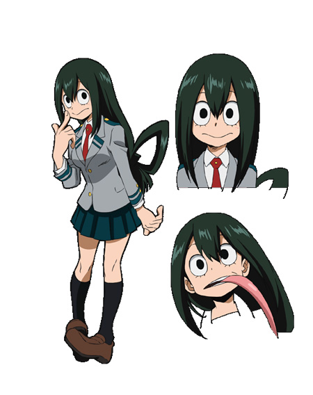 拥有着能用舌头卷起出久、同时抱住两人并进行长距离跳跃的怪力。个性是蛙。