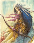 在畴华之野,住着一个叫凿齿的怪物。凿齿长着野兽的头,其牙齿形状像凿子.能把金石贯穿。见大羿带着弓箭找上门来,凿齿慌忙一面拿起盾牌遮挡自己,一面伸出牙齿迎战。后羿挥动宝剑砍去,盾牌顿时折成两半。凿齿吓得转身逃跑,后羿则拉弓上弦,一箭正中凿齿心窝。