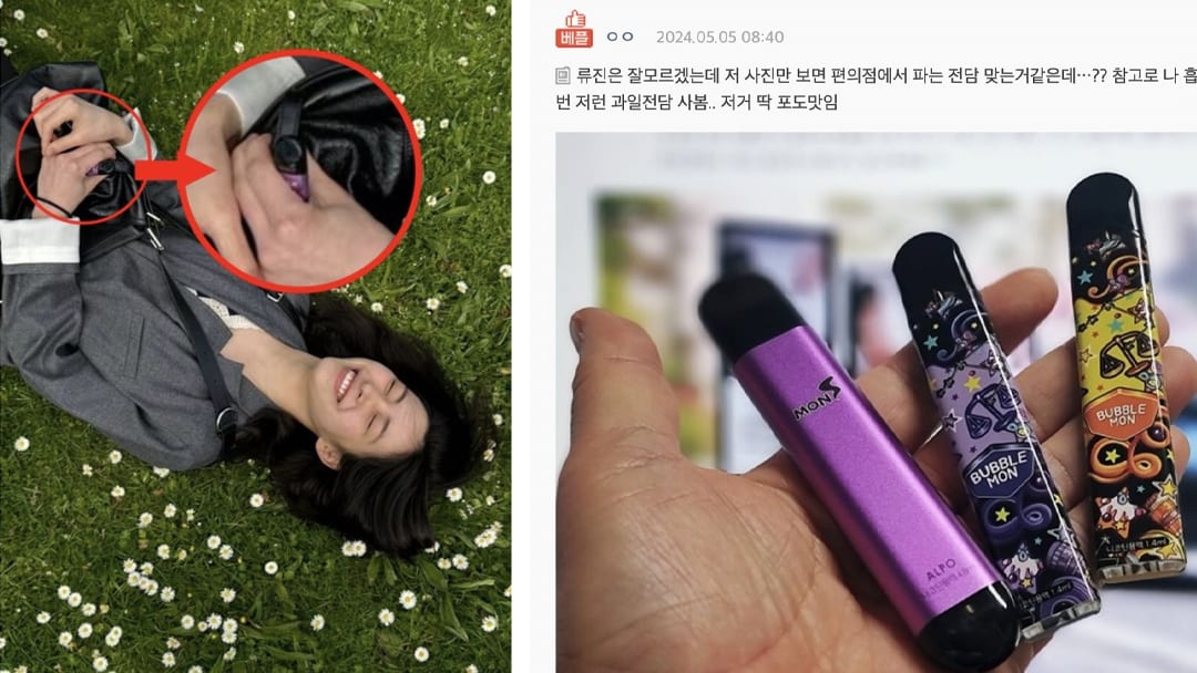 Ryujin贴出一张自己躺在草坪上的照片,她穿着休闲西装外套,笑容灿烂。不料,她手里的紫色物品却被眼尖的粉丝认出疑似是电子烟。有网友马上搜出对比图,连该电子烟的同款都列出,模样确实极为相似。