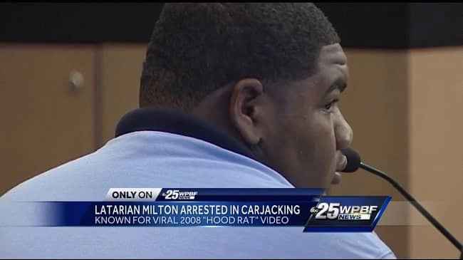 2008 年 4 月,年轻的拉特瑞安 (Latarian) 一举成名,当时他带着祖母的道奇杜兰戈 (Dodge Durango) 与朋友一起在棕榈滩的街道上兜风。两个 7 岁的孩子乘坐 SUV 巡航的结论对各种财产造成了相当大的伤害。 Latarian 在西棕榈滩新闻台 WPBF 的事故后采访中声称。他生他的母亲,她是一个连续吸烟的人,他只想抽烟。由于米尔顿描述和捍卫自己行为的不同寻常的方式,这段视频在网上疯传,几乎一夜之间让他成为了网络名人,并产生了许多模因。 2008年6月,拉特瑞安再次引起媒体关注。这次是在湖公园沃尔玛打败他的奶奶。