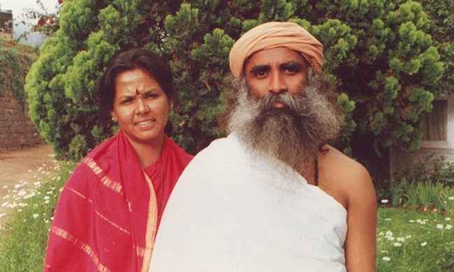 图片说明:Jaggi Vasudev 和他已故的妻子 Vijayakumari。来源:中