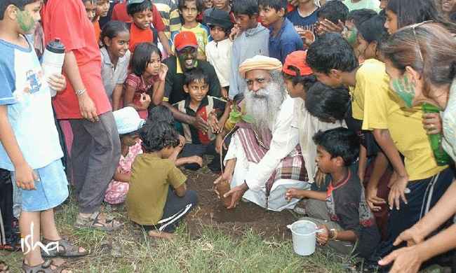 图片说明:Jaggi Vasudev 参与了 GreenHands 项目。资料来源:Isha Outreach