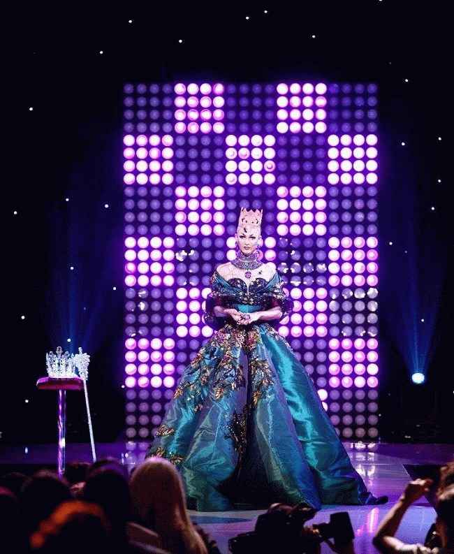 说明:Violet Chachki 作为第 7 季的冠冕持有者出现在 Rupaul's Drag Race 的第 8 季决赛中。来源:Amino