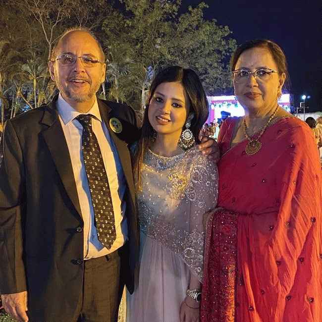 图片说明:Sakshi Dhoni 和她的父母(来源:Instagram)