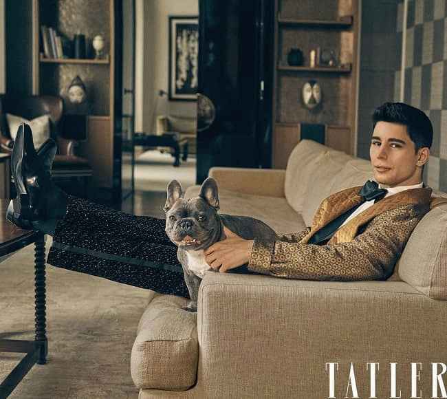 图片说明:Omid Scobie 和他的宠物狗 Yusho 出现在一本杂志上。来源:Instagram