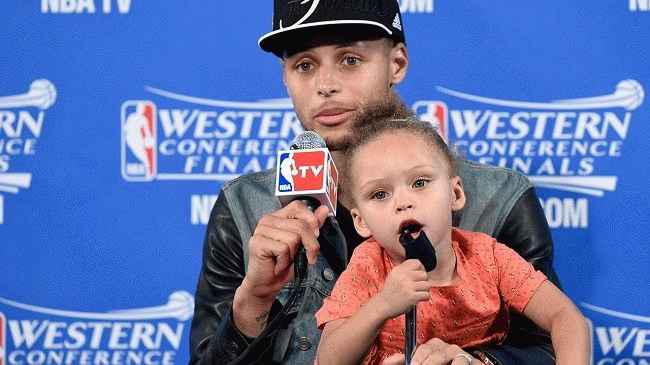 职业莱利·库里两岁时就偷走了全世界篮球迷的心。 2015 年 5 月 19 日,她在父亲的一场赛后新闻发布会上登上舞台。她决定坐在父亲的腿上,他不得不接受,而他则回答了记者的提问。库里甚至用迷人的傻笑要求他“安静”,这从她父亲那里抢走了聚光灯。