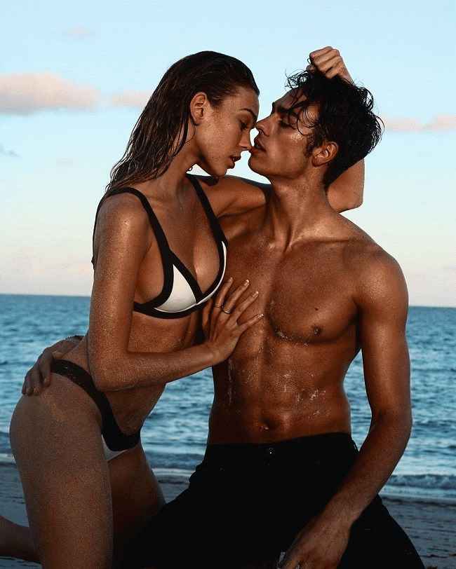 图片说明:Corentin Huard 和他的女朋友 Priscilla Mezzadri 在海滩上摆出一张舒适的照片来源:Instagram