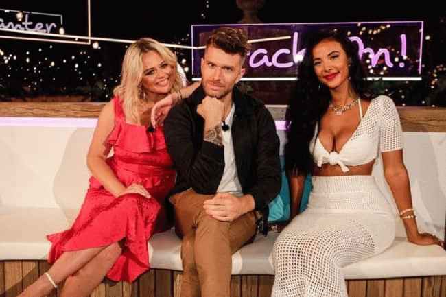 图片说明:Maya Jama 与 Emily Atack 和 Joel Dommett 于 7 月出现在 Love Island Aftersun 中。来源:镜子