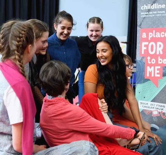 图片说明:Maya Jama 在学校的心理健康意识计划中与学生互动。来源:Instagram