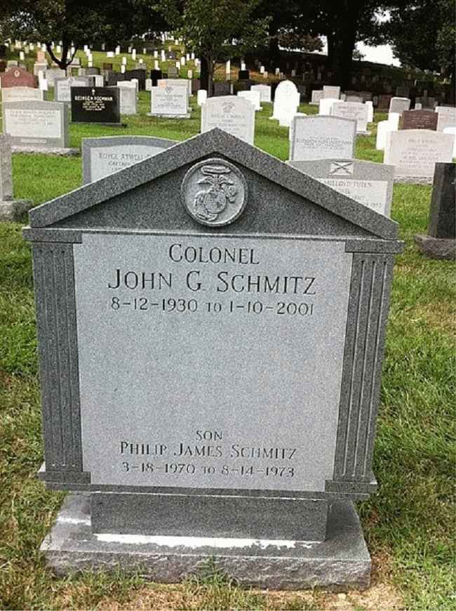 个人生活约翰·乔治·施密茨 (John George Schmitz) 幸福地嫁给了 玛丽苏尔 .他总共有9个孩子。他们是约翰、约瑟夫、玫琳凯、菲利普、杰罗姆、特蕾莎、伊丽莎白、约翰和尤金妮。他的儿子约翰是副总统的副法律顾问。同样,约瑟夫是国防部监察长。而且,玛丽是一名前学校教师和性犯罪者。