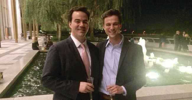 文字说明:罗伯特和他的兄弟蒂姆一起享受派对