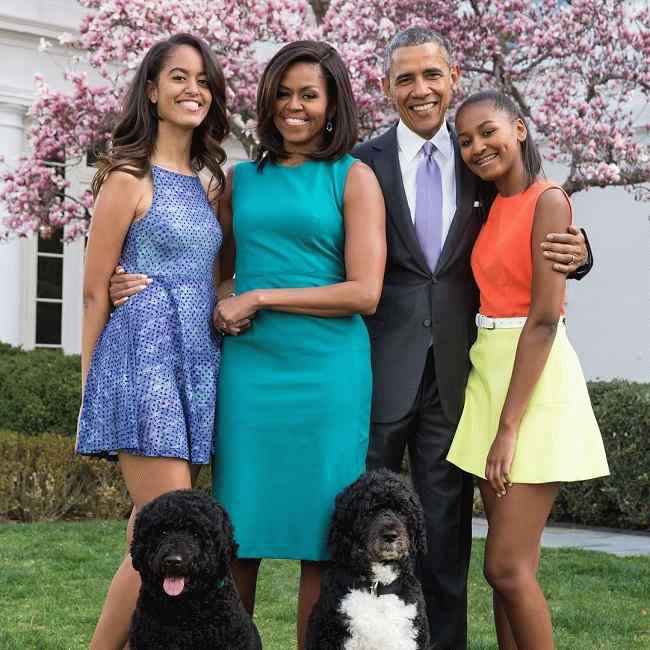 图片说明:Sasha Obama 与她的家人和宠物狗(来源:Instagram)