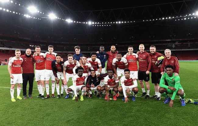 图片说明:永贝里与他执教的阿森纳队合影留念。来源:Instagram