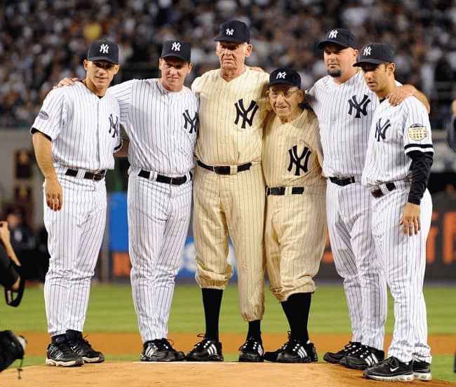 图片说明:Don Larsen 与纽约洋基队(来源:纽约邮报)