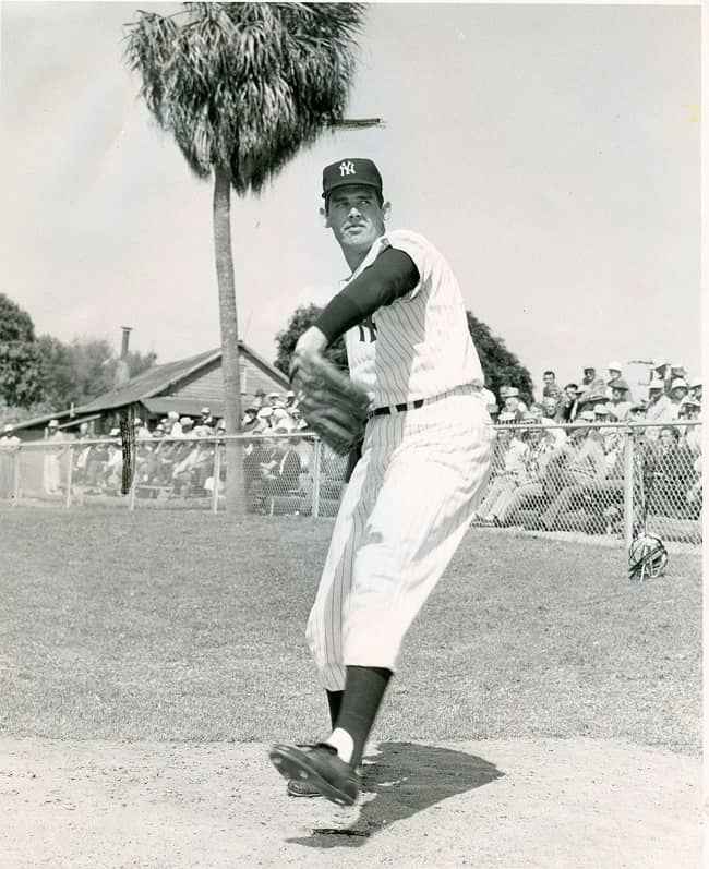 图片说明:Don Larsen 在比赛中(来源:棒球大厅)