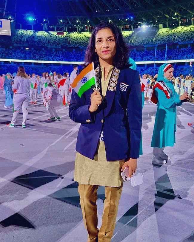 图片说明:东京奥运会上的 Simranjit Kaur。来源(Instagram)