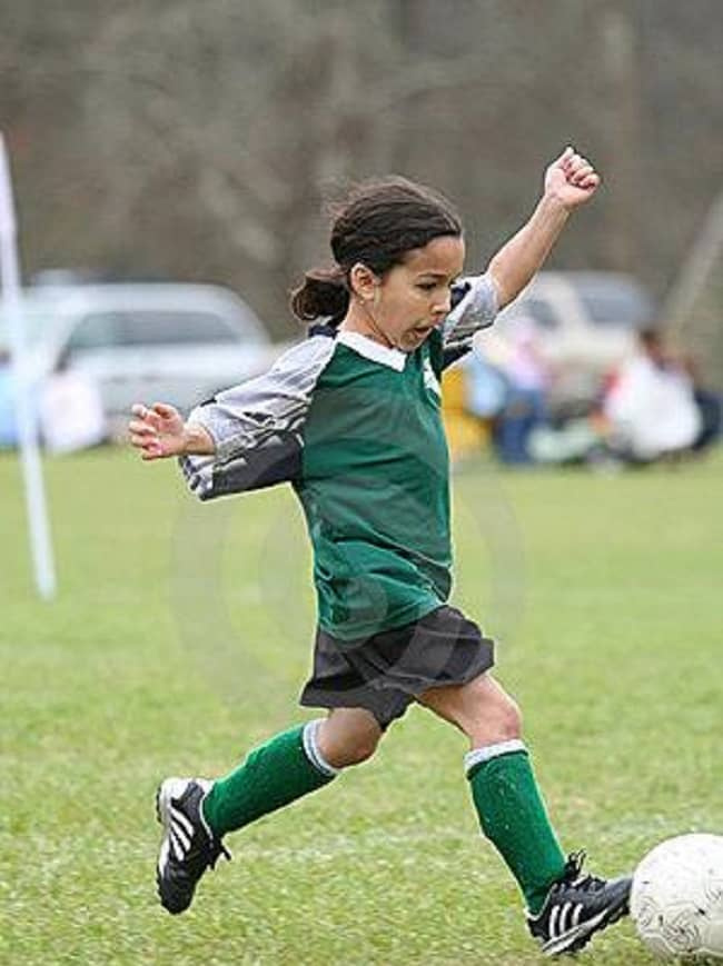 米娅·哈姆(Mia Hamm)很小的时候就踢足球 资料来源:Sutori