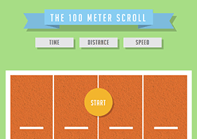 (来自于:英国类型:趣站)现实世界中,博尔特跑得最快,那么在网络世界里,谁跑得最快呢?the 100 Meter Scroll是一款HTML5在线小游戏,通过滚动鼠标来完成100米“赛跑”。虽然只有100米,相对于世界上最高的网页以及世界上最深的网页来说简直是小巫见大巫,但你真正玩起来才发现,这想要到达终点也是个体力活。温馨提示,小心你的鼠标哦。