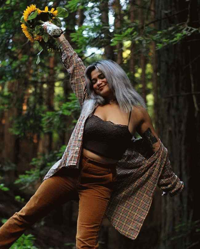图片说明:Clementine Albano 在红杉林中摆姿势拍照。来源:Instagram