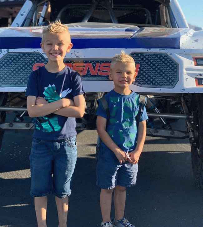 图片说明:Az 和 Canyon 于 2019 年 11 月首次体验 NHRA 飙车。来源:Facebook/Tannerites