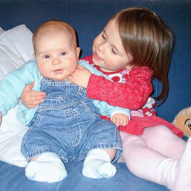 图片说明:Lovevie 在童年照片中穿着红色连衣裙与妹妹合影(来源:Instagram)