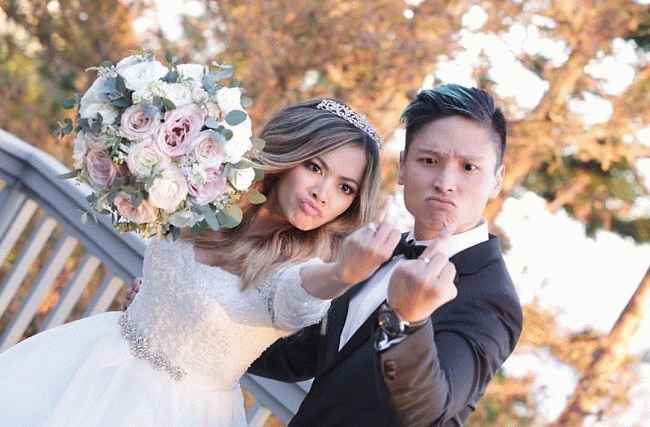 图片说明:Heart Defensor 和她的丈夫 Arnold Telagaarta 在婚礼当天点击了一张疯狂的照片。来源:Instagram