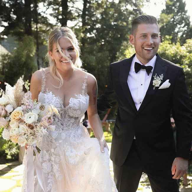 图片说明:萨曼莎·拉夫达尔在与丈夫马特的婚礼上。 (来源:Instagram)