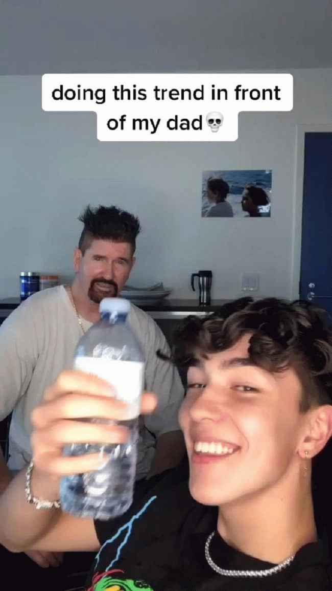 图片说明:Brandon Ironside 和他父亲一起玩抖音。来源:抖音