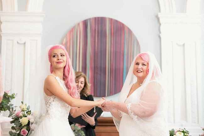 Julia Zelg 和她的妻子 Eileen De Freest-Sellge 在他们的婚礼上。来源:Instagram