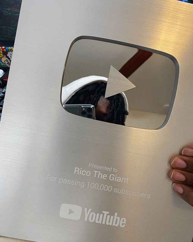 图片说明:巨人里科炫耀他的银色 Youtube 牌匾。来源:Instagram