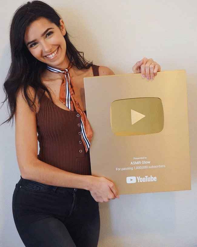 说明:ASMR Glow 在她的 YouTube 频道上获得了超过 100 万订阅者,获得了 YouTube 黄金播放按钮。来源:Instagram
