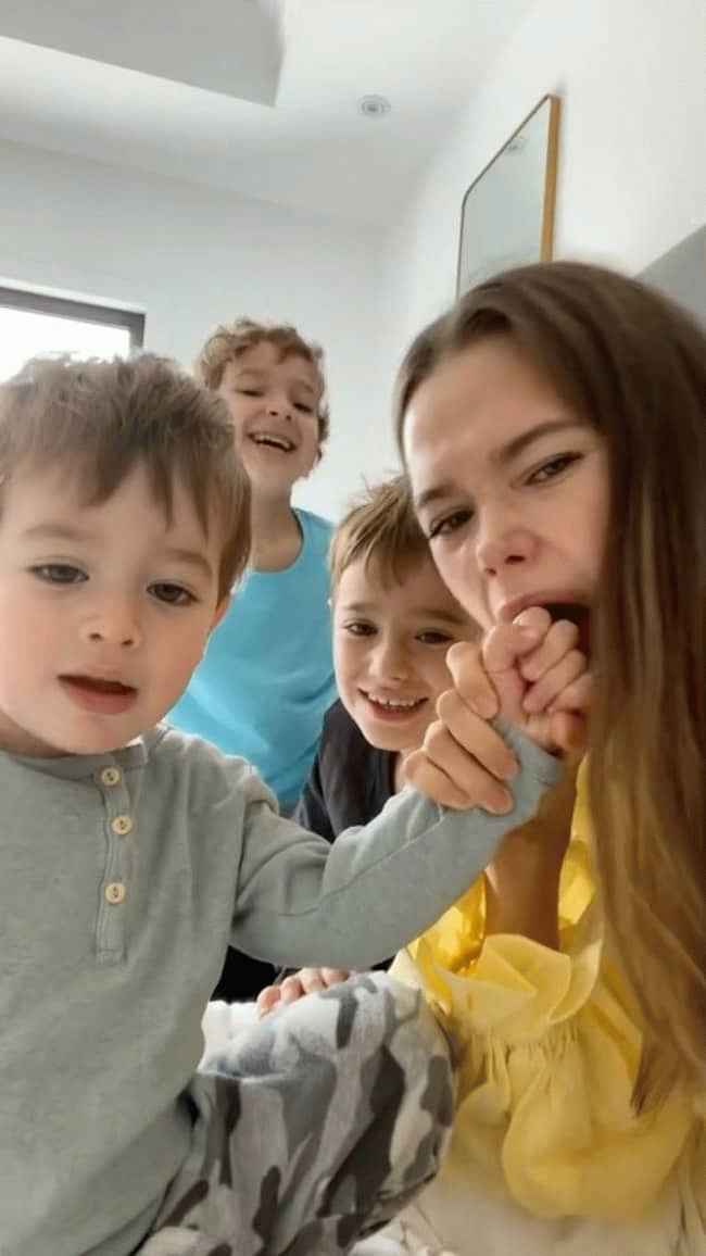图片说明:Valeria Lipovetsky 和她的三个儿子(来源:Instagram)