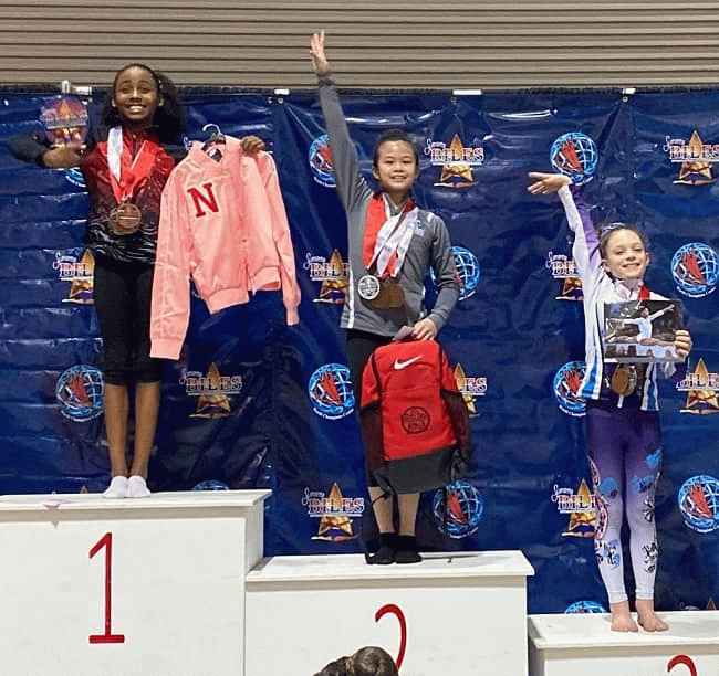 图片说明:钱德勒·金在赢得比赛后摆姿势拍照,并在领奖台上炫耀她的奖品。来源:Instagram