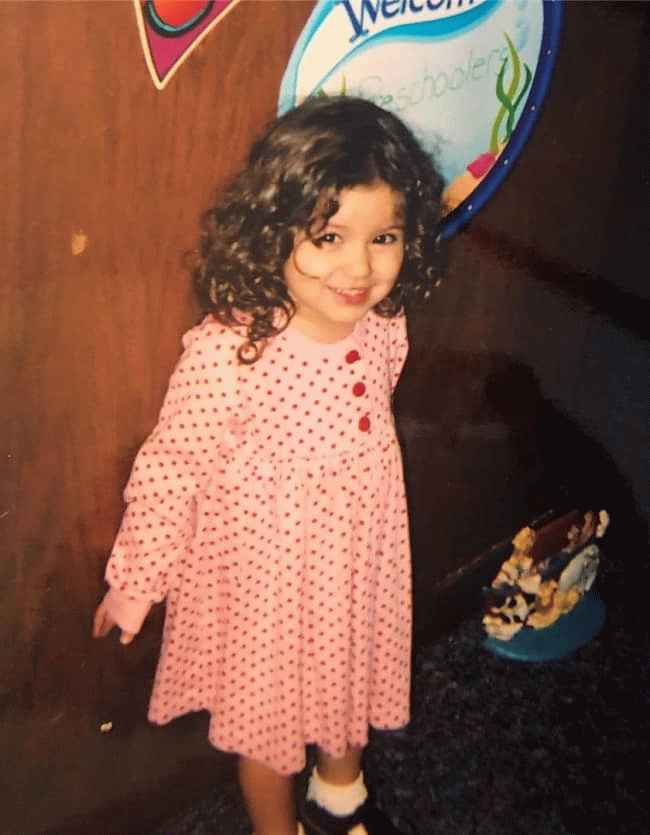 图片说明:Emma Kittiesmama 在她的童年照片上摆姿势(来源:Instagram)