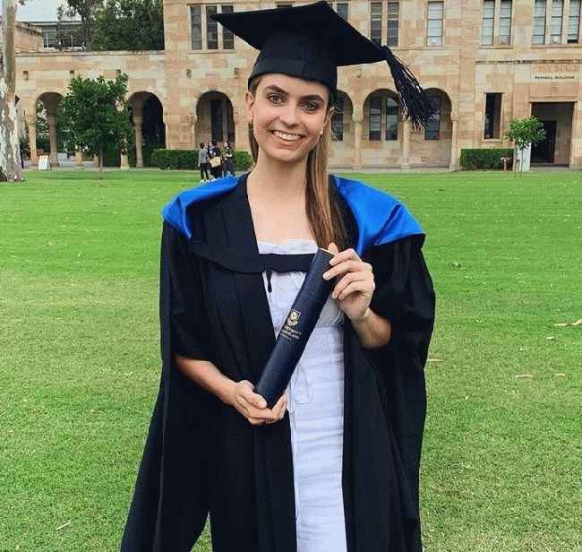 此外,她属于英国国籍和高加索人种。为了求学,她已经从昆士兰大学毕业,还晒出了一张戴着毕业帽的照片。但没有她主修的学科的信息。