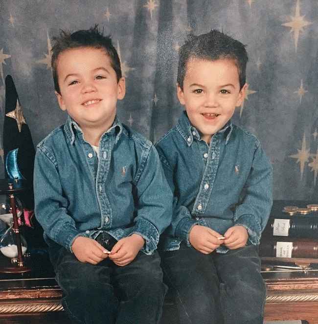 图片说明:Grayson Dolan 与他的双胞胎兄弟传播他的童年记忆(来源:Pinterest)