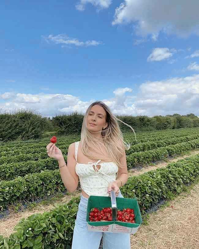图片说明:索菲亚·塔克斯福德(Sophia Tuxford)在草莓农场之旅中摆姿势拍照。来源:Instagram