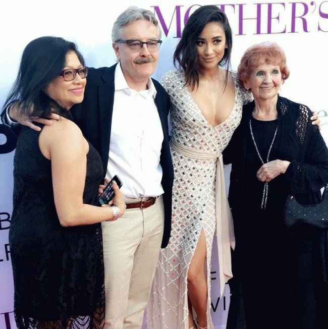 图片说明:Shay Mitchell 在“母亲节”电影首映式上与家人在一起。来源:Stylevore