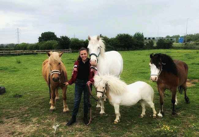 图片说明:Kia Pegg 与她的一群小马合影留念。来源:Instagram